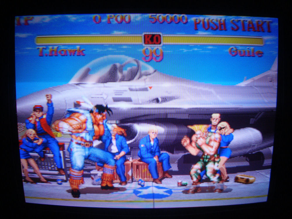 The monitor is an original CRT that has been rebuilt and looks great! The joysticks work great for the fighting games, and everything works as it should.