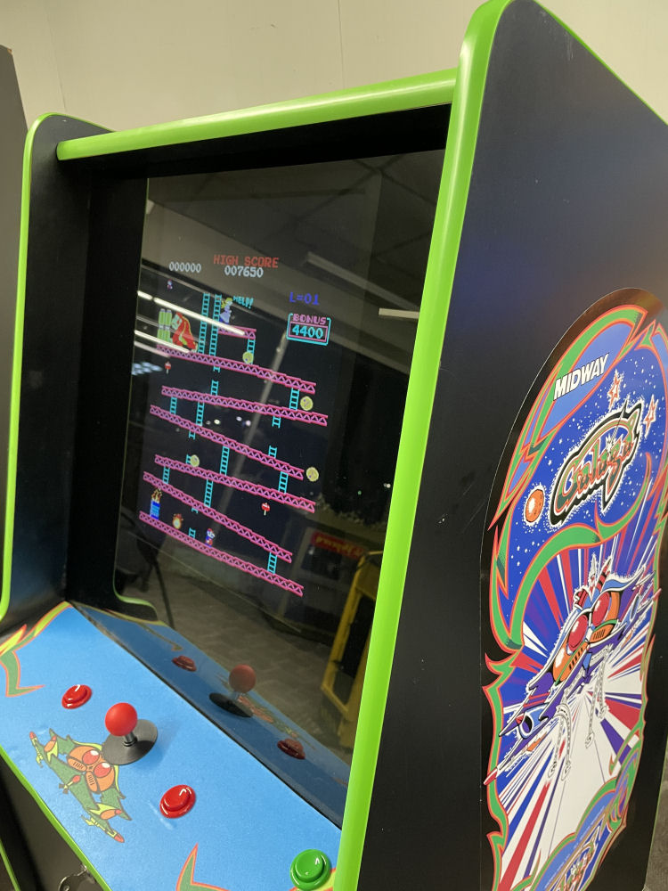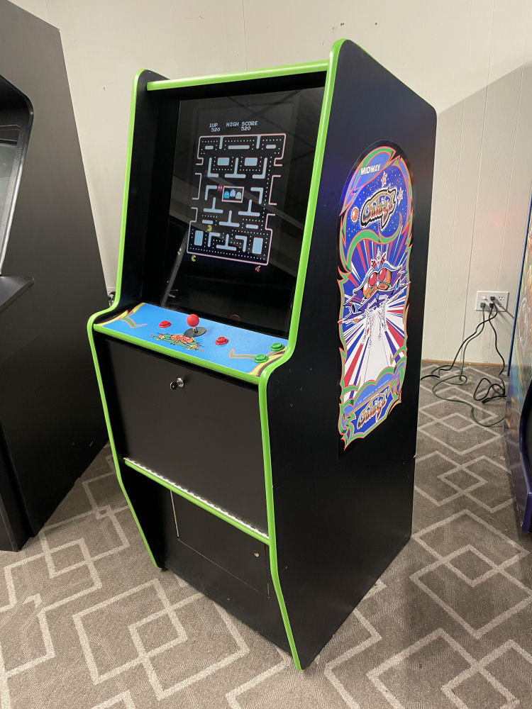The cabinet has been upgraded to play the 60 games instead of just 1. It's not new, and still has some character flaws from it's years in the arcade earning quarters, but looks pretty good as you can see. -
