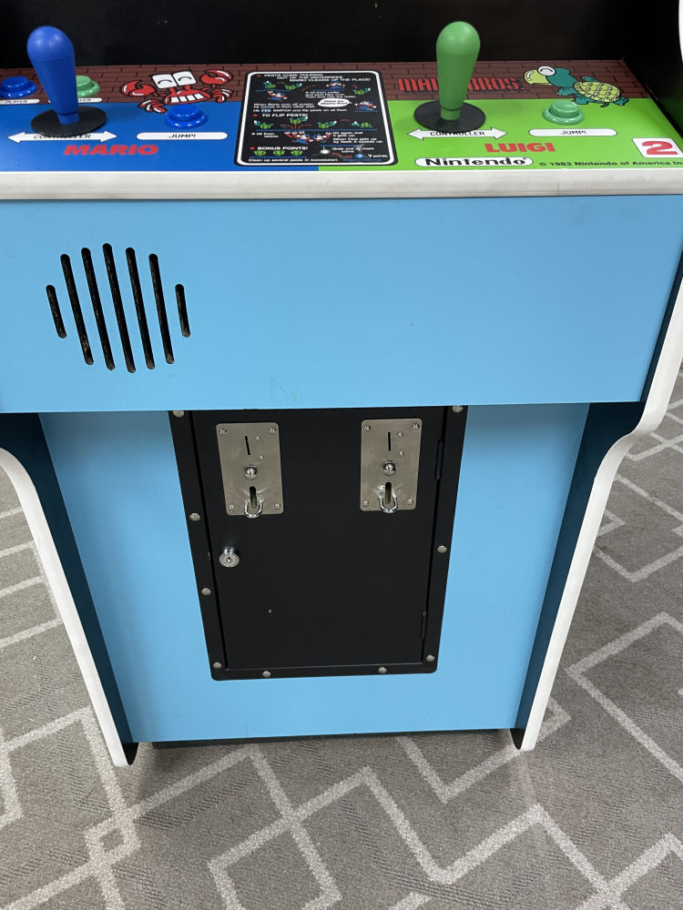 The game can be played for free with the keys if you want, or can take quarters so you can charge your friends. -